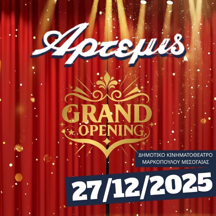 Ανανεωμένο ανοίγει ξανά την αυλαία του το Δημοτικό Κινηματοθέατρο Μαρκοπούλου «Άρτεμις», με την πολυαναμενόμενη νέα ταινία του Γιάννη Σμαραγδή «Καποδίστριας» σε Α΄ προβολή και τη μεγάλη φετινή επιτυχία «Τα Κάλαντα των Χριστουγέννων»!