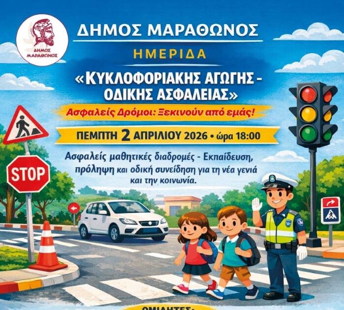 Στο πλαίσιο της κοινωνικής ευθύνης και της προστασίας της ανθρώπινης ζωής ο Δήμος Μαραθώνος, με πρωτοβουλία του Τμήματος Συγκοινωνιών και Εγκαταστάσεων, διοργανώνει μια σημαντική ημερίδα για την οδική ασφάλεια και την πρόληψη των ατυχημάτων.