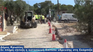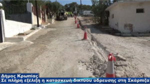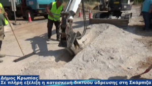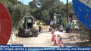 Συνεχίζονται με εντατικούς ρυθμούς οι εργασίες για την κατασκευή του νέου δικτύου ύδρευσης που θα επιλύσει οριστικά το πρόβλημα υδροδότησης του οικισμού της Σκάρπιζας Κρωπίας. Τις επόμενες ημέρες θα γίνει μια πρώτη εκτεταμένη δοκιμή για την εύρυθμη λειτουργία του δικτύου που ήδη έχει κατασκευαστεί και αμέσως μετά θα καλυφθούν τα αυλάκια των σωληνώσεων με άσφαλτο ή τσιμέντο ανάλογα με τη μορφή του δρόμου, ώστε να περιοριστεί στο ελάχιστο η όχληση των κατοίκων από τη σκόνη.