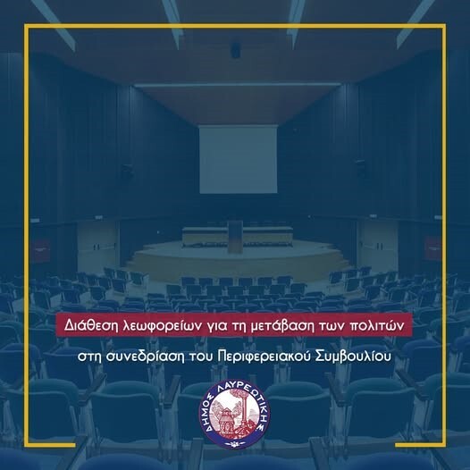 Ο Δήμος Λαυρεωτικής ανακοινώνει ότι θα διατεθούν λεωφορεία για τη μετάβαση των πολιτών στη συνεδρίαση του Περιφερειακού Συμβουλίου που θα πραγματοποιηθεί την // και ώρα 13:00 στο αμφιθέατρο του Υπουργείου Υποδομών και Μεταφορών.