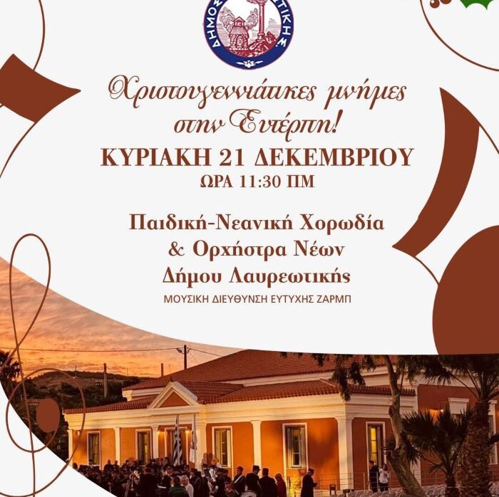 Η Παιδική-Νεανική Χορωδία και η Ορχήστρα Νέων του Δήμου Λαυρεωτικής, υπό τη μουσική διεύθυνση του Ευτύχη Ζαρμπ, μας προσκαλούν σε μια μαγική χριστουγεννιάτικη μουσική διαδρομή για μικρούς και μεγάλους.