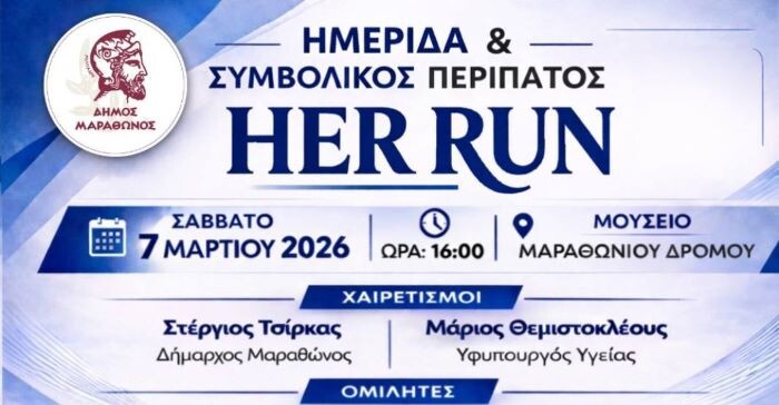 Μετά την ημερίδα, ενώνουμε τα βήματά μας στον συμβολικό περίπατο “Her Run” μέχρι την Αφετηρία του Μαραθωνίου Δρόμου, στέλνοντας μήνυμα ισότητας, ενότητας και συλλογικής δύναμης.