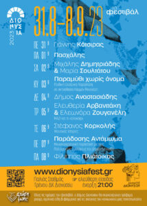 Για ένα ακόμη καλοκαίρι, σας προσκαλούμε στα «Διονύσια 2023», το Πολιτιστικό Φεστιβάλ που διοργανώνεται για 12η χρονιά αποτελώντας θεσμό για το Δήμο Διονύσου. Οι εκδηλώσεις ξεκινούν την Πέμπτη 31/8 και ολοκληρώνονται την Παρασκευή 8/9, περιλαμβάνοντας συναυλίες με γνωστούς καλλιτέχνες, παιδική θεατρική παράσταση αλλά και παραδοσιακό μουσικοχορευτικό δρώμενο από τους πολιτιστικούς συλλόγους του Δήμου μας.