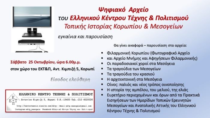 Ψηφιακό Αρχείο του Ελληνικού Κέντρου Τέχνης & Πολιτισμού Τοπικής Ιστορίας Κορωπίου & Μεσογείων