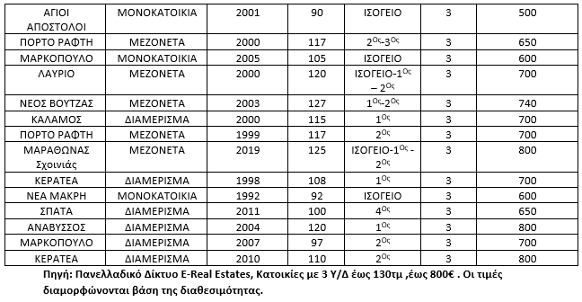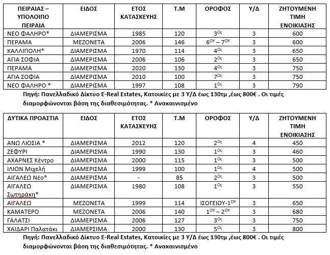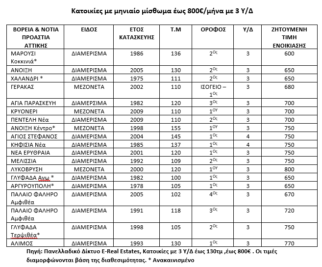 Κατοικίες με μηνιαίο μίσθωμα έως 800€/μήνα με 3 Υ/Δ