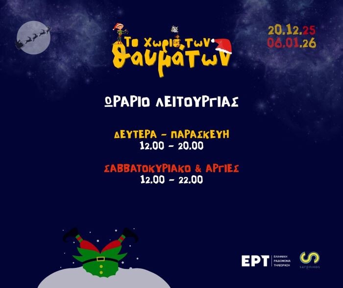 Το Χωριό των Θαυμάτων ζωντανεύει κάθε ημέρα Δείτε παρακάτω το ωράριο λειτουργίας και ελάτε να ζήσετε τη μαγεία των Χριστουγέννων! Είσοδος δωρεάν Δωρεάν συμμετοχή σε όλες τις δραστηριότητες